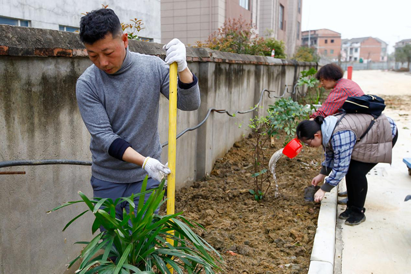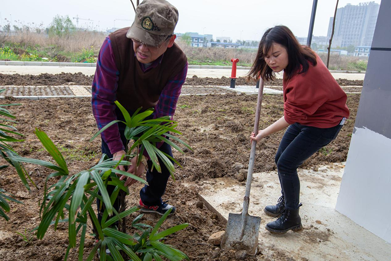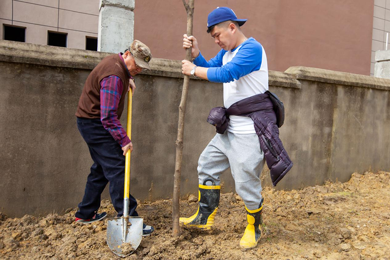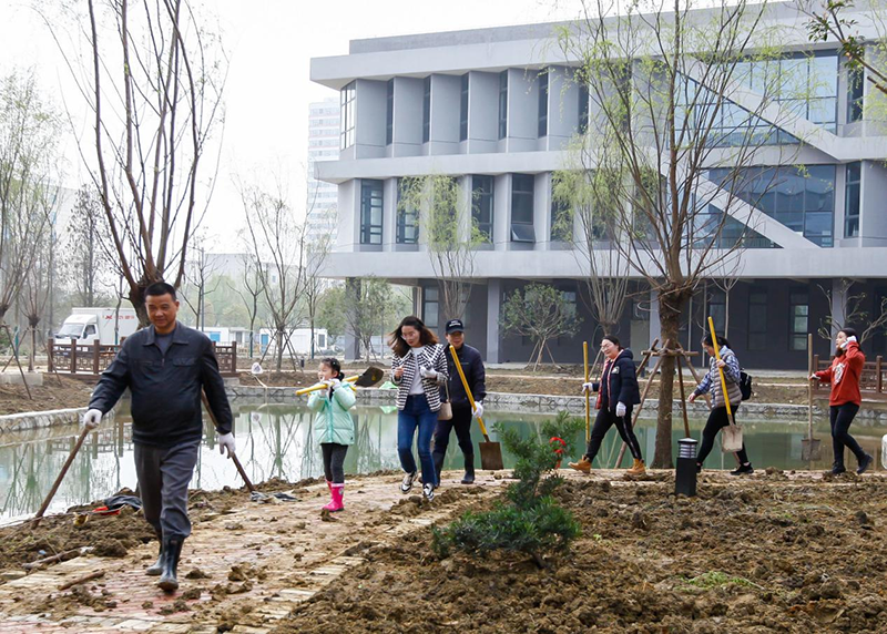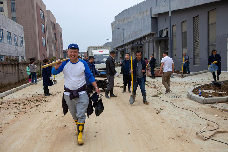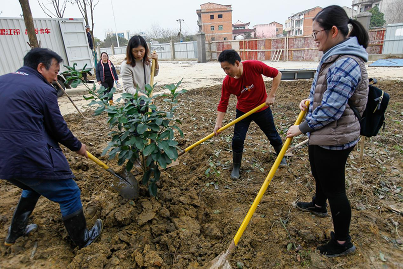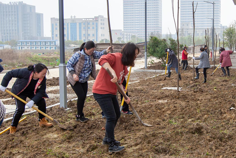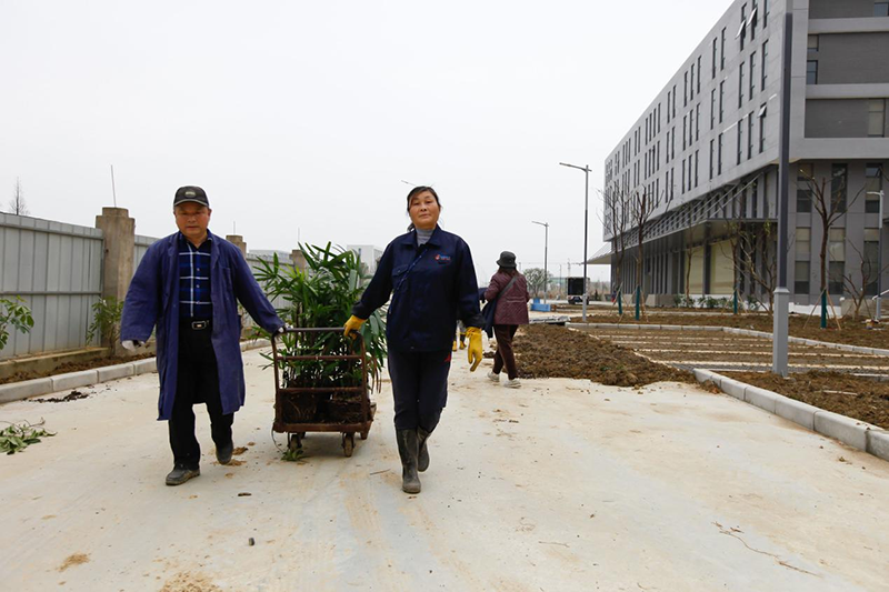 大家争先恐后地挥舞铁锹,或两人一组,或三人一组,有的卸车、挖洞、有的扶正,有的浇水,分工明确,配合默契,合力栽下一棵棵树苗。将近正午时分,200多棵树苗就稳稳地深扎在泥土里,在和煦的春风中,挺拔的树苗错落有致,呈现勃勃生机。植树间隙,行政部总经理黄煌在劳动现场还不时叮嘱大家要保证栽种质量,切实提高种植树苗的成活率。