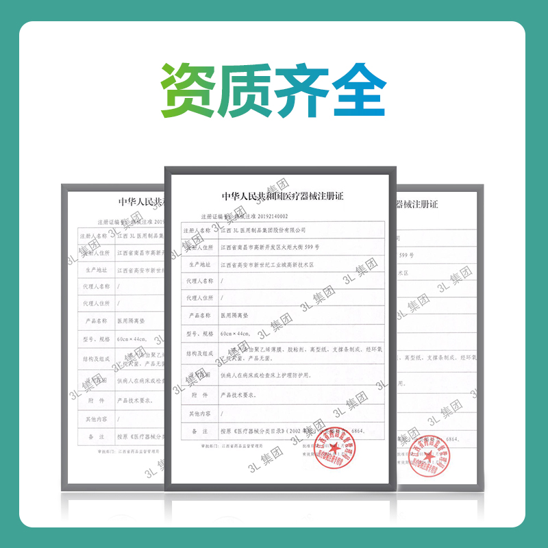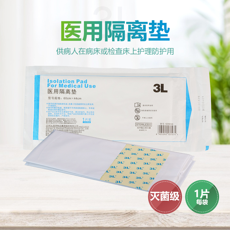 医用隔离垫:由聚乙烯膜、胶粘剂、离型纸、支撑条制成。供病人在病床或检查床上护理防护用。