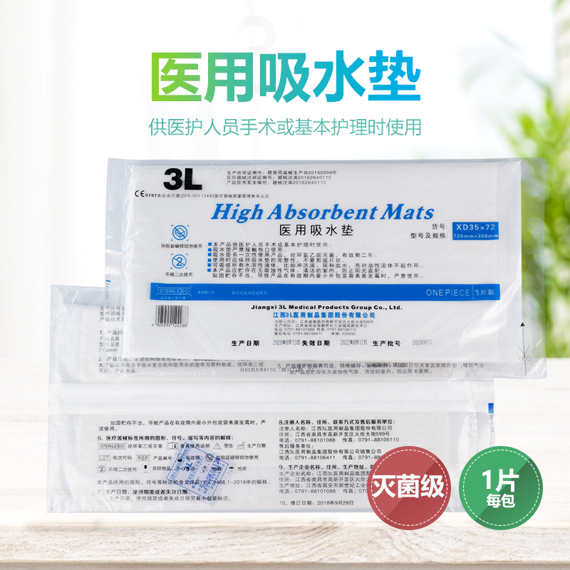 医用吸水垫:采用高分子吸水复合纸和医用非织造布制成。供医护人员手术或基本护理时使用。